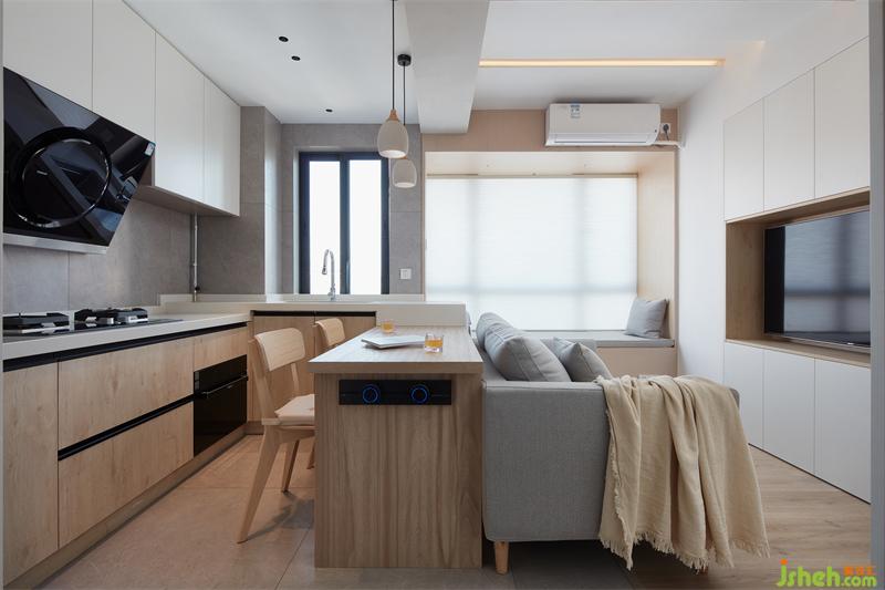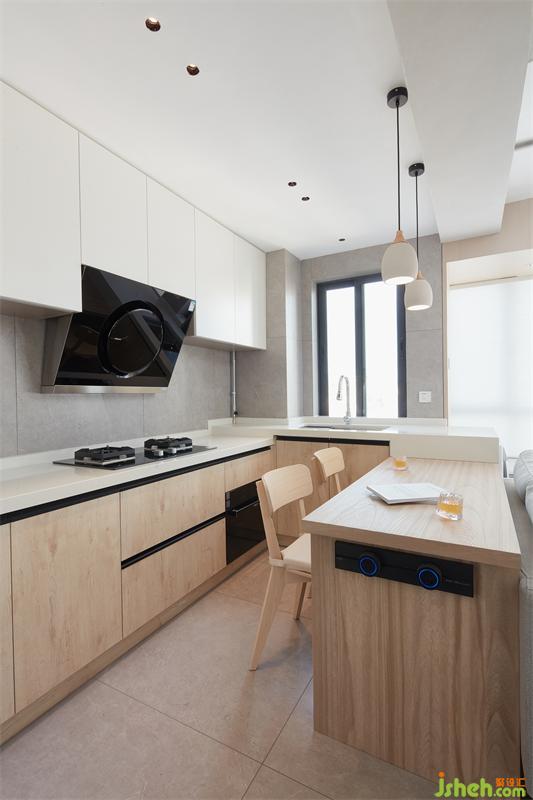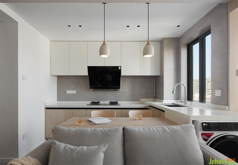 浅色系的厨房,干净明亮,一个最为烟火气的地方,也因敞亮的格局而明媚。