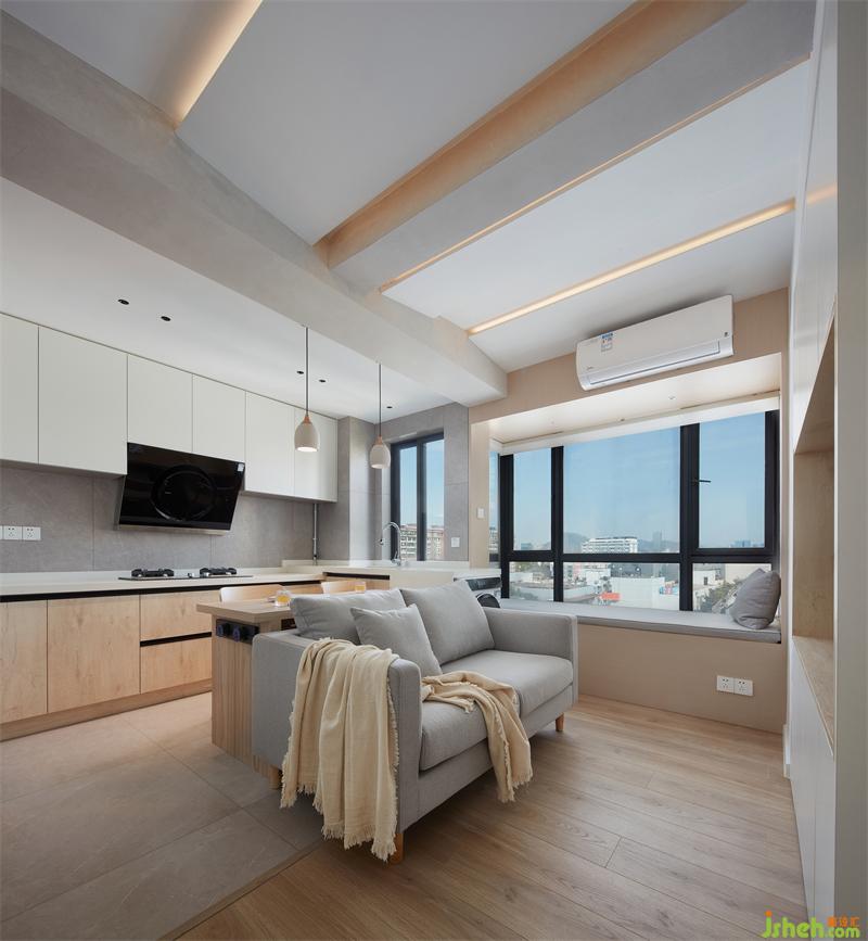 整个空间明亮通透,搭配蜂窝帘,很好地保护了家居的私密性,同时任意切换室内光度,实现更加多样化的采光。