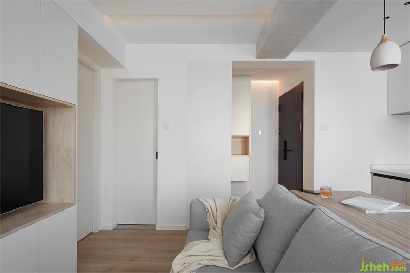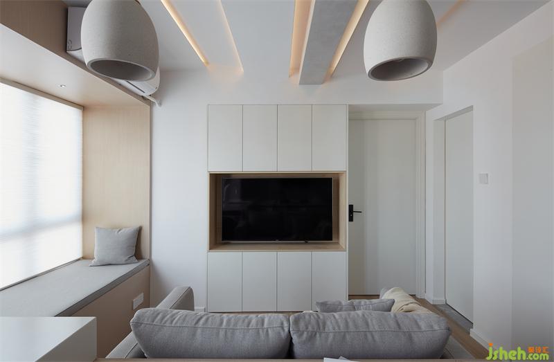 最大化利用空间做收纳电视柜镂空以原木色打破单调视觉,定制了一整面墙的电视柜,配色上沿用白色+原木这对好cp,不仅颜值出众,储物能力更是max。