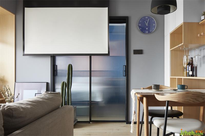暗藏投影幕布在天花顶,播放时即可开可合的主卧长虹玻璃推拉门