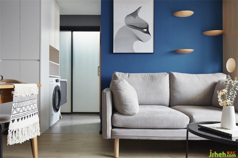 粉色蓝色,犹如晚霞落入余晖。00后的屋主,在色彩的接受程度上比较OPEN,展现出屋主内心满满小女心哈哈,实际落地后不空间视觉增加10平不止。