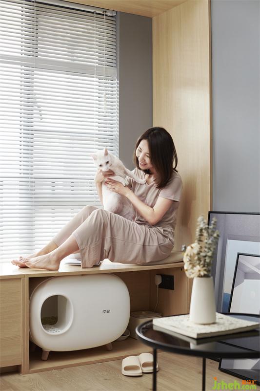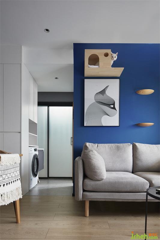 3.客厅靠窗户做矮柜与高柜收纳结合,也提供屋主的猫咪居所