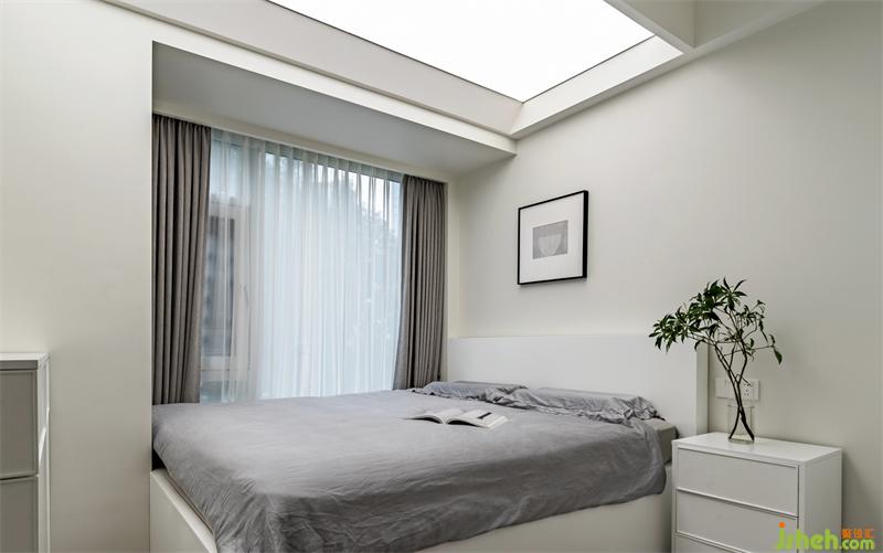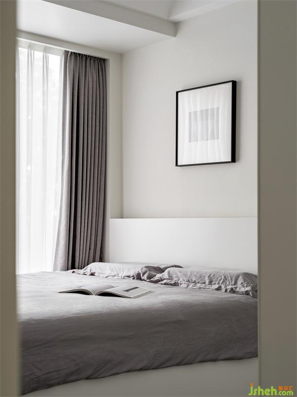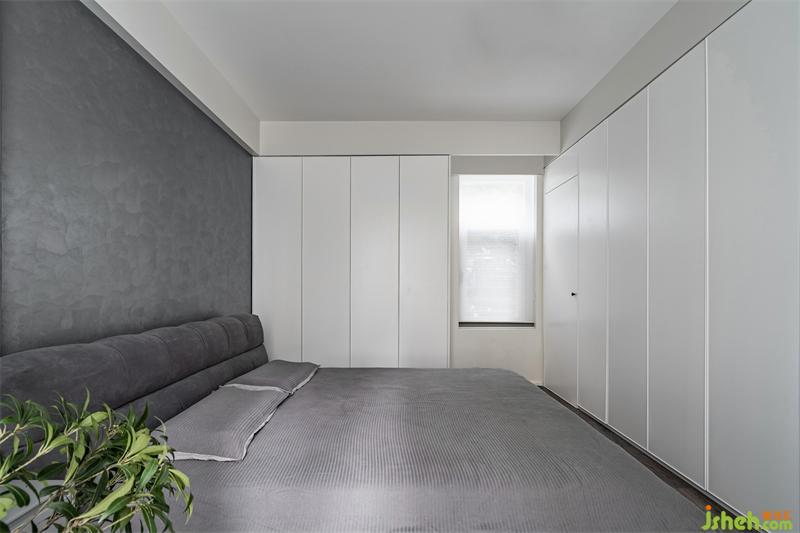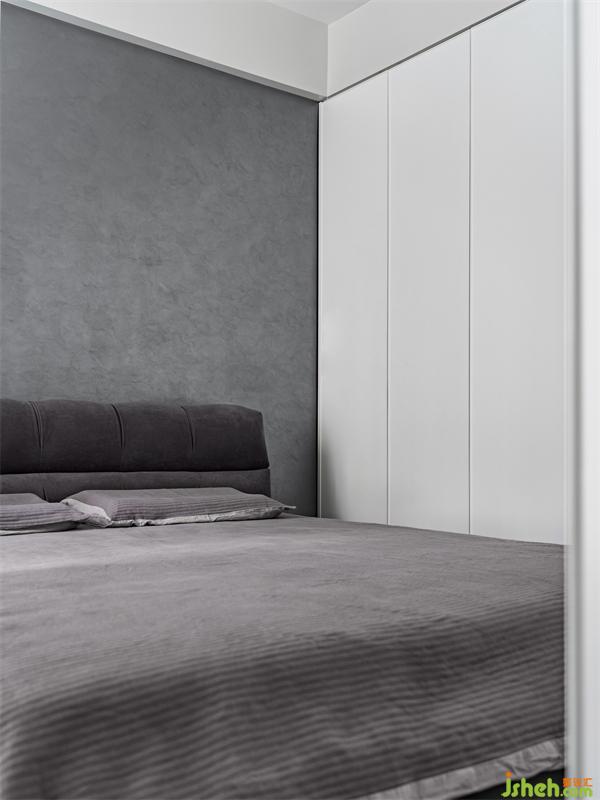 主卧诠释出简约、静谧的生活情趣,灰白基调的竖线条,增加了空间的视觉高度,极简也不失主动,从黄昏到黎明,胜过一切过去的诗。