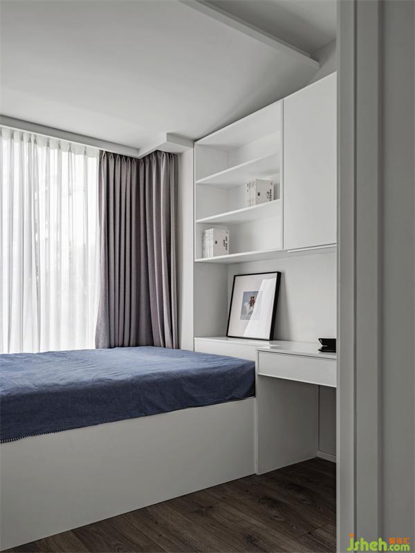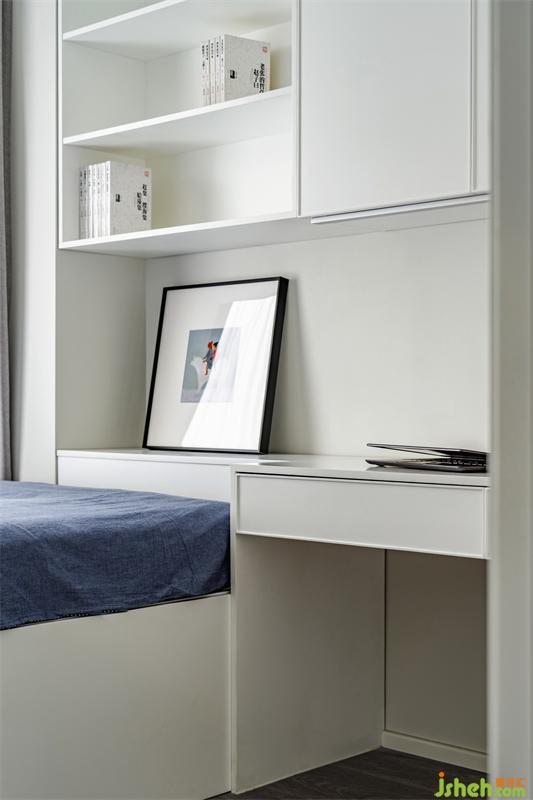 一个整洁空间氛围就被营造出来了,自然光线透过窗户照进学习区域,空间没有复杂的装饰,足够的储物空间,整个空间传达着寂静和舒适。