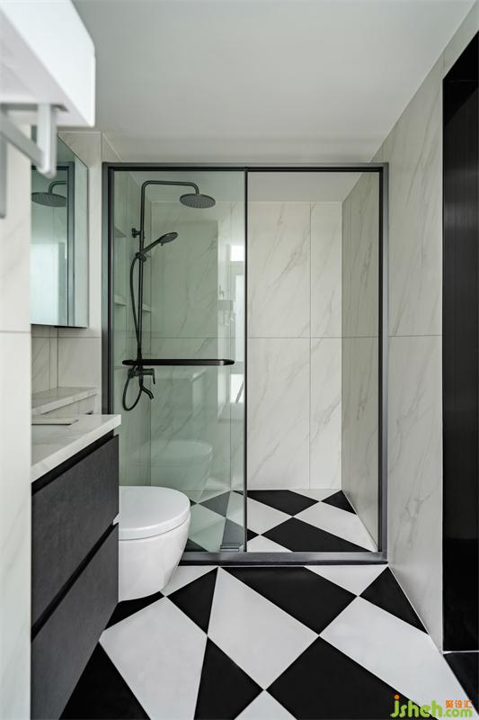 干湿分离的卫浴,提供最便利的生活方式,几何地砖交相辉映,现代简约也自带放松。