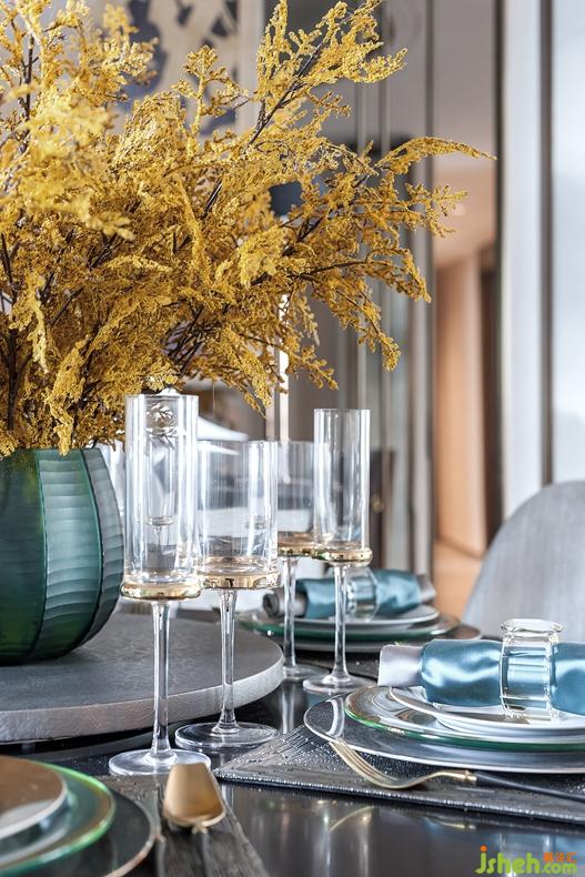 通透半开放式的玻璃屏风将餐厅区域巧妙围合,同时,似梦似幻的山川造型挥洒在四面屏风上,在这里虚与实形成对照,浮华中透着静美,让人仿佛置身于山水间,享受愉悦的用餐氛围。