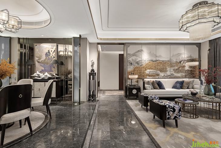 君胜·熙珑山位于深圳龙岗中心城与国际低碳城的双核交汇处,创域设计的样板间就隐藏在这后花园里。基于该项目为潮汕精睿阶层的客户定位,设计师决定以新东方风格开展熙珑山样板间设计,让东方元素洗去时光的束缚,用简明扼要的设计符号表达传统文化的内涵,通过传统意象与现代材质的对话碰撞营造出雅致惬意的空间氛围。