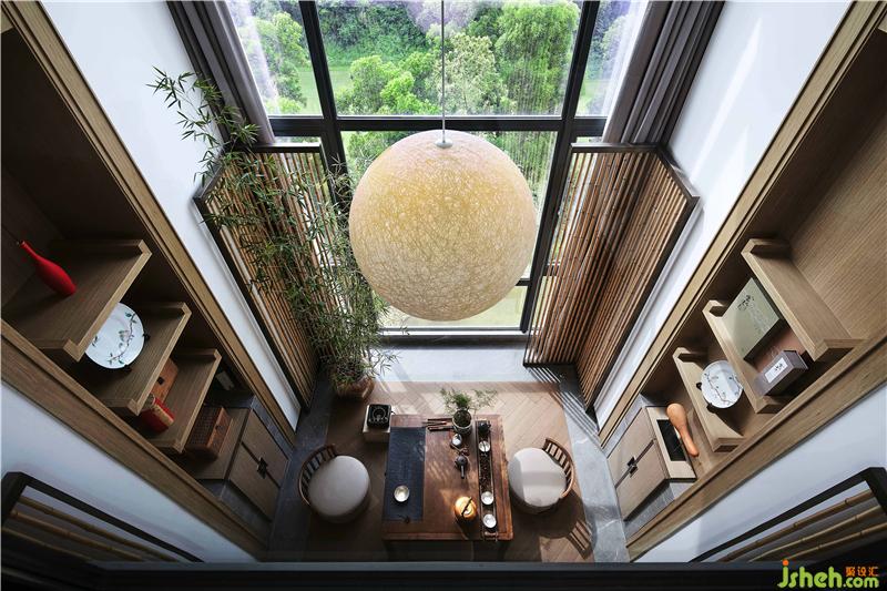 殷艳明认为:“设计是一门生活的艺术,承载着自己对生活的感悟,对美的理解和追求。”这个理念在茶空间的设计上也体现得淋漓尽致。茶空间同样采用高挑空的设计,同时以落地窗打造空透开阔的视觉效果,窗外高尔夫球场的绿地景致一览无余,使整个空间融于自然之中。