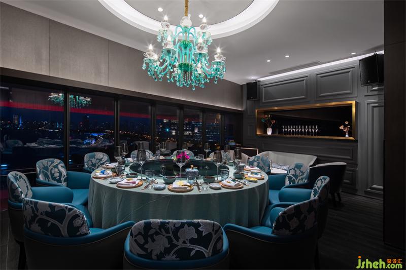 悦江餐厅设计在空间设计方面除了表达出中西混搭风格特点之外,还将海派元素与国际视觉表达方式相结合,试图打造出具有艺术人文特色的高端文化体验餐厅。