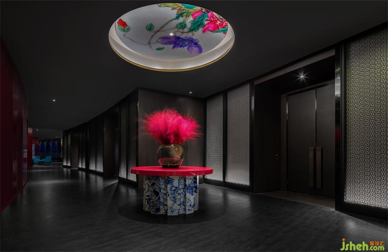 悦江瓷文化主题餐厅,坐落于黄浦江边上海世博园梅赛德斯文化艺术中心六层,建筑面积1500平米。餐厅以餐饮作为载体,力求创造出餐饮陶瓷艺术艺术馆的新空间文化体验。餐厅以清乾隆珐琅彩虞美人题诗盌为文化背景,从西洋绘画工艺与中国传统陶瓷工艺的结合,找寻出人文美学东瓷西韵的美学形式和风格在空间中的表达。
