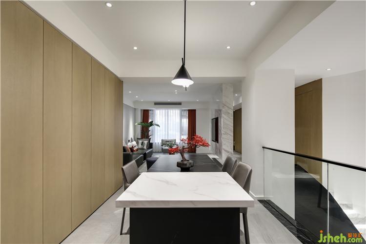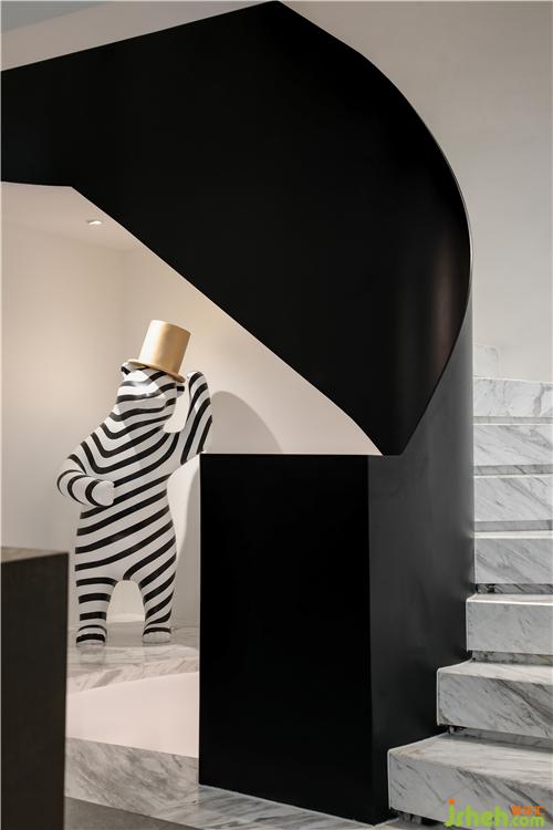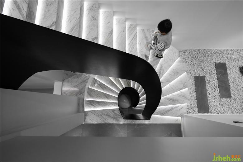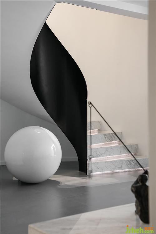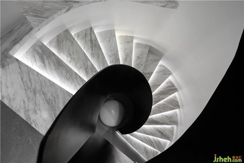 叠墅设计充滿藝術構造感的旋轉樓梯貫穿別墅空間,明暗交錯,光影重疊,空間的層析與連接在回旋之中得以感受,給了人完整的起承轉合的體驗。