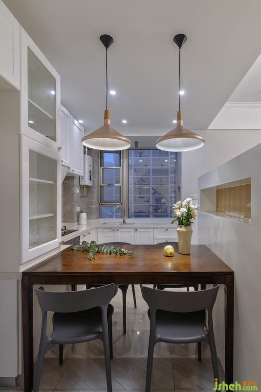 餐厅面隔断中间又做了局部掏空,方便放置小物品也增大视觉效果,告别压抑。隔断,屏风它的寓意和作用是有靠山,聚财纳福。
