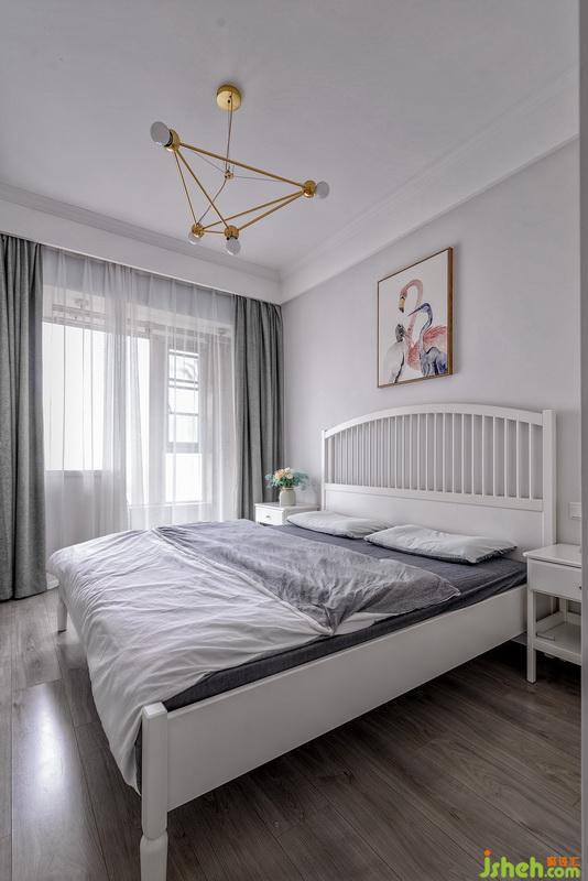卧室墙刷了淡淡的乳白色,和顶部对比可见层次感。