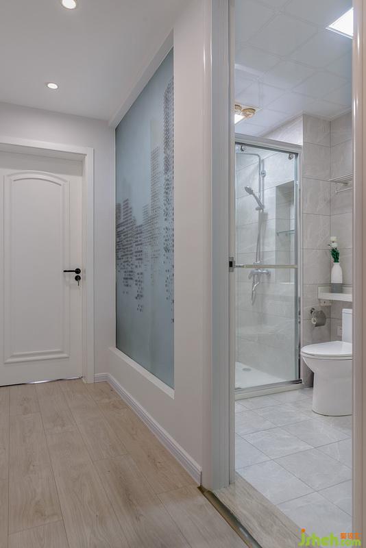 卫生间外墙嵌入大面积磨砂玻璃增加通透感,一堵实墙就压抑很多。