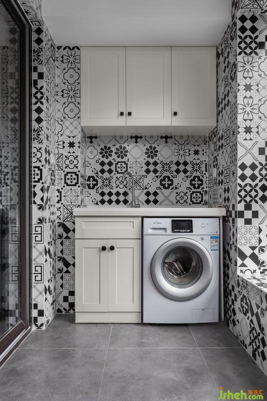 碎花貌美小花砖。就如女人钟爱碎花裙,甜美~ 阳台洗衣柜组合台盆池,如果空间允许,还是非常实用的,家务最多的活儿就是洗洗刷刷啦,而卫生间清理起来相对麻烦,这是一个家务小能手的心得~