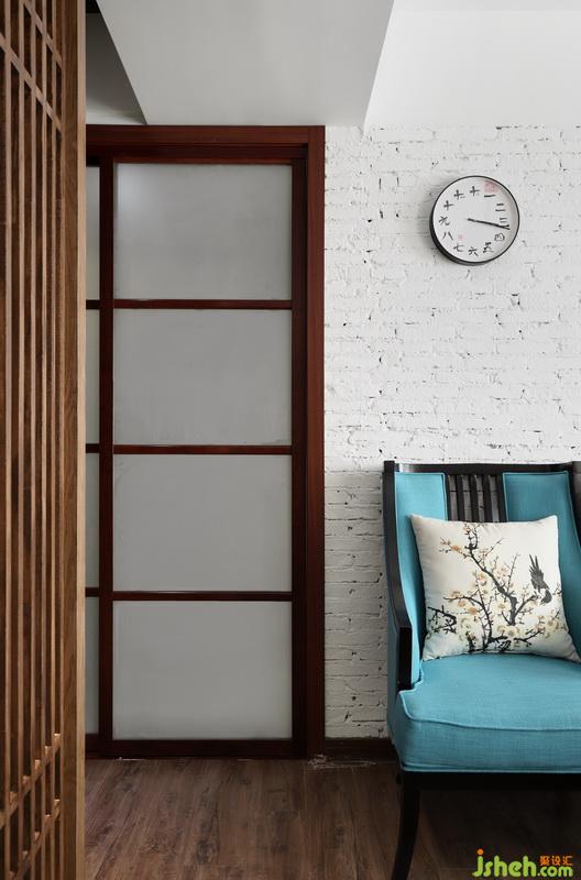 装饰物件协调统一,一个雅致的抱枕让空间更为柔美。挂画的外框和隔断的木质感也是有意识的统一呼应。