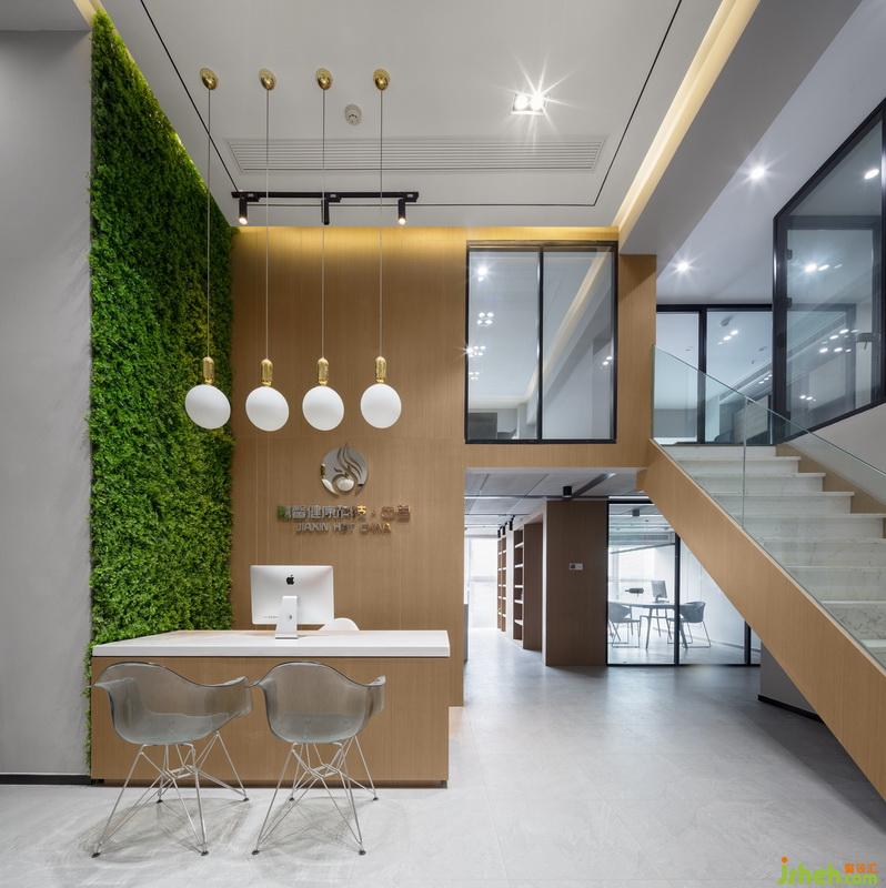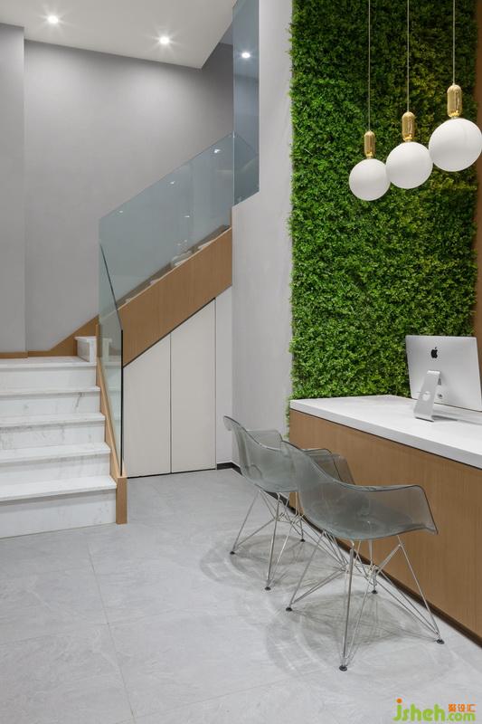 设计亮点:双向楼梯设计 大面积绿植上墙 吧台休憩兼产品展示区