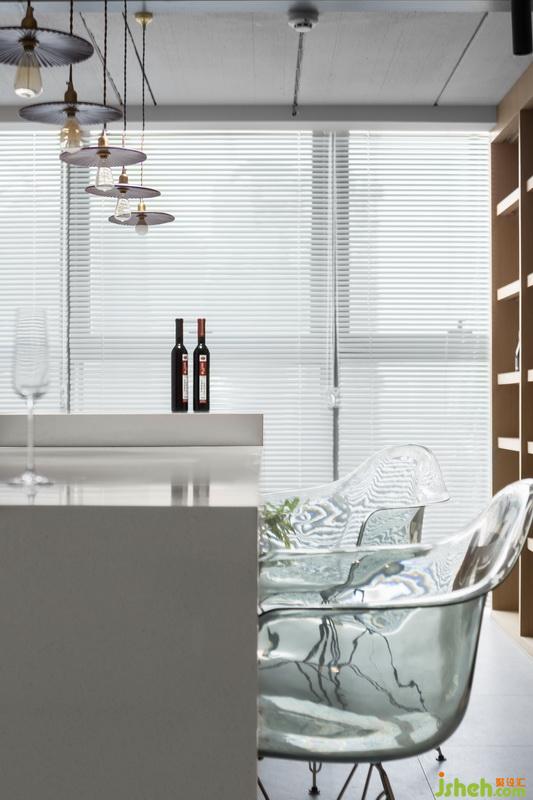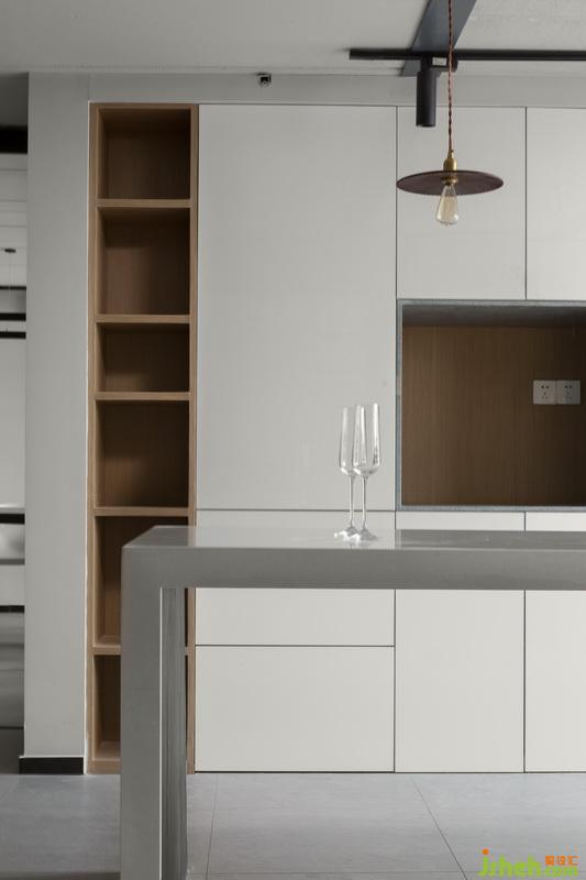 大理石岛台高端上档次,对于办公场所来说,视线下追求简洁,功能上追求实用,现场制作大面积的储物柜,让颜值和功能两者兼备。白色的柜门低调百搭,凸显空间简洁之美。一排工业风小吊灯,让这里充满意境。