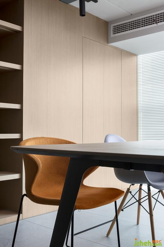 整面墙的置物柜设计,达到视觉美观度,而且拥有超大置物空间。简洁大气的办公桌椅,尽显品味。现代树杈吊灯,设计感十足。办公室的洽谈一角,灰色为主,橙色撞色,充满热情和活力。一对小物件,也可以为空间增色很多。