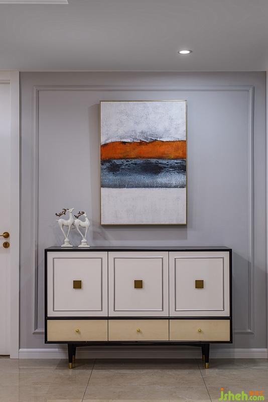 进门设计玄关,入户有美景。网购玄关柜,高颜值又能增强储物空间。选一副挂画遮挡电箱,好的设计应该是细致入微的。
