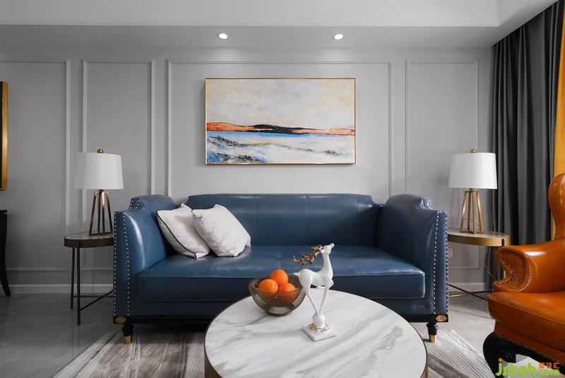 客厅石膏线条上墙,营造轻松简单的美式氛围。