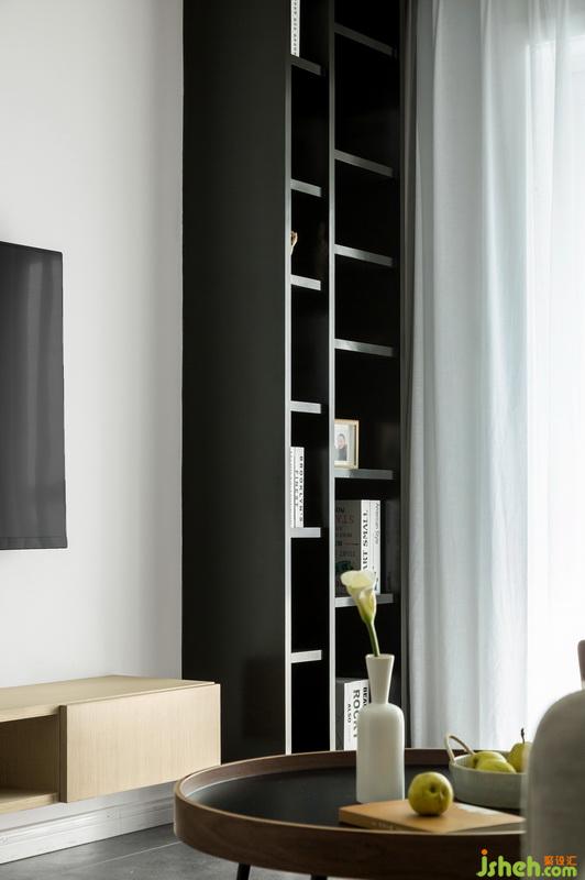 电视柜和装饰柜为壹石现场制作,除增加收纳功能以外,黑色装饰柜也给简洁的空间多了一份硬朗。在设计上的色调搭配,过多的深色会让人产生压抑,而如果没有深色相称也就反衬不出质感,正是颜色有深浅、明暗有变化。