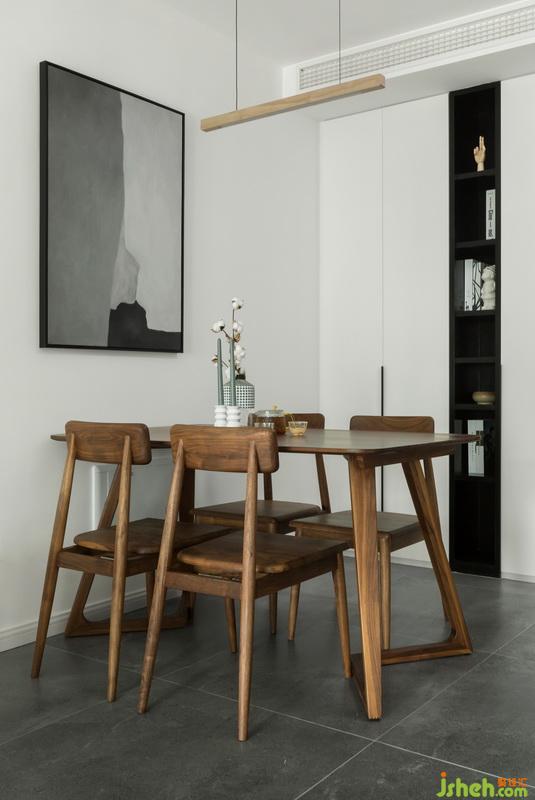 餐厅侧边墙设计了一排柜体,藏和显相结合,白和黑有对比。餐桌上配置自带格调的小物件,瞬间提升幸福感,坐下来喝一杯茶,和爱人吃一顿烛光晚餐。放下急匆匆的往前赶的步伐,不要忽视了体验当下最好的时光。当我想象这一副画面,心里是暖的,享受职业带给我们成就感和满足感。