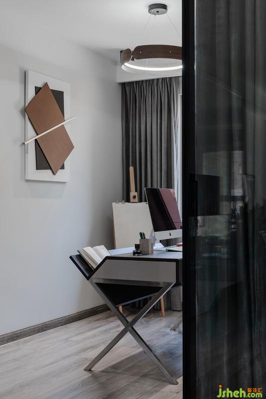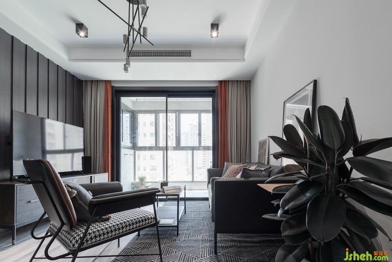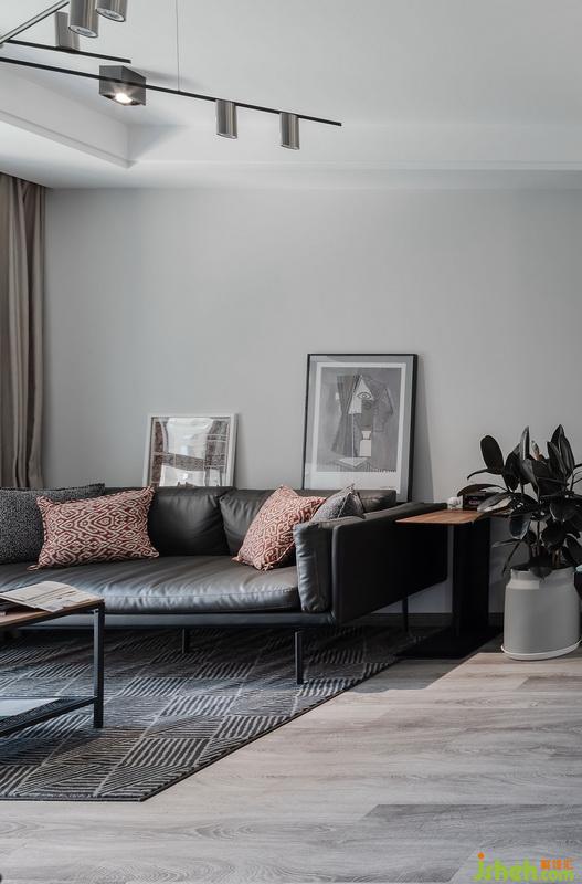 融与入。整体空间硬装简练,电视背景墙用了科定饰面板延伸隐形门设计,线条的干净利索打破深色的沉闷,质感又利索。同时后期软装在色彩搭配上赋予少许亮色,是内敛的也是生动活泼的。