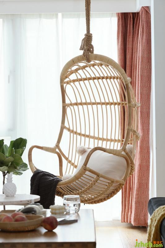 设计说:喜欢随性自在的生活,所以在居住空间上也想追求自由自在的感觉,想在休憩的午后,闲暇的时光,躺在吊椅里,窝在懒人沙发上,坐在阳台的小书房里泡一壶茶,看一本书或看一部喜欢的电影,享受当下生活的惬意。