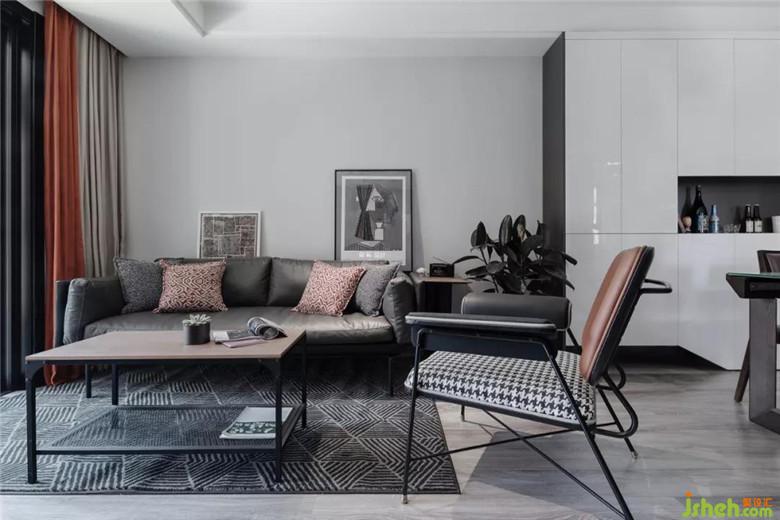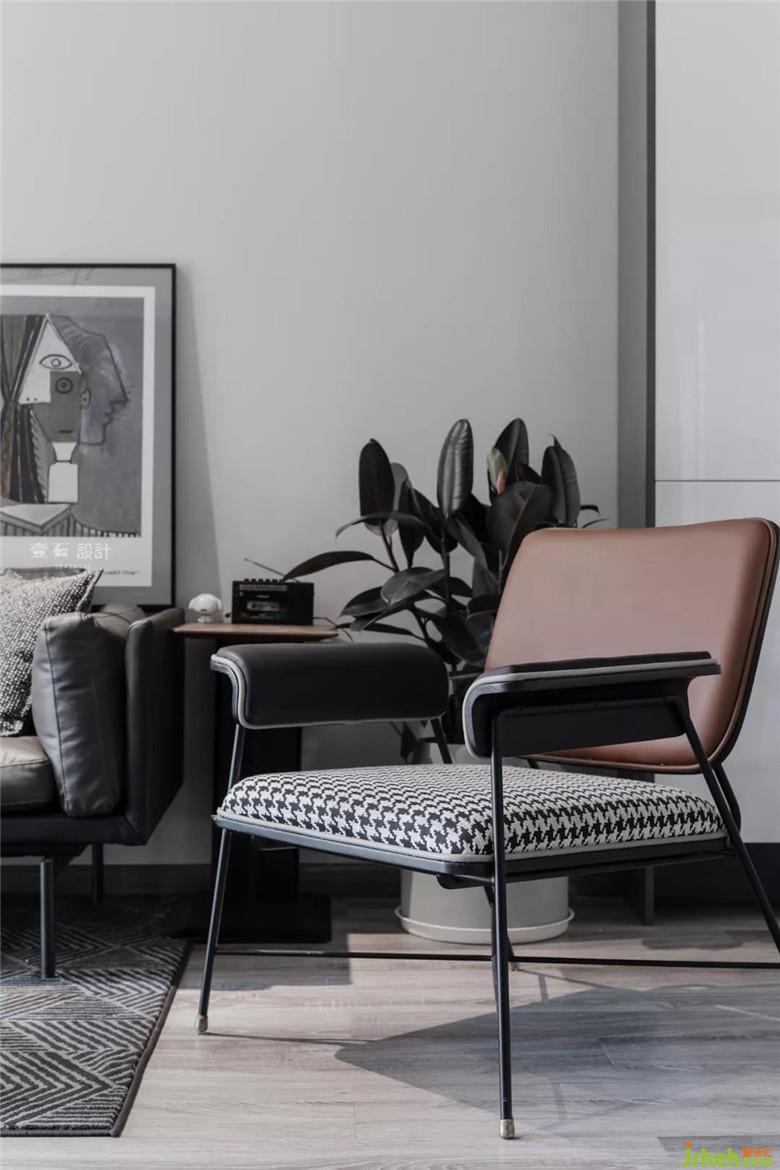 融与入。整体空间硬装简练,电视背景墙用了科定饰面板延伸隐形门设计,线条的干净利索打破深色的沉闷,质感又利索。同时后期软装在色彩搭配上赋予少许亮色,是内敛的也是生动活泼的。