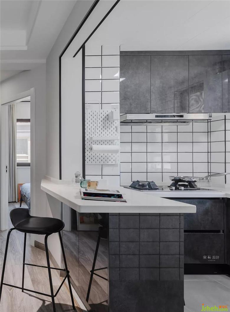 对于经常外出觅食,偶尔到父母家蹭饭,不经常开火的90后而言,开放式厨房和吧台是一种情怀。早上煎蛋,面包牛奶,书房工作累了跑来泡一杯咖啡坐坐,这是他的生活。