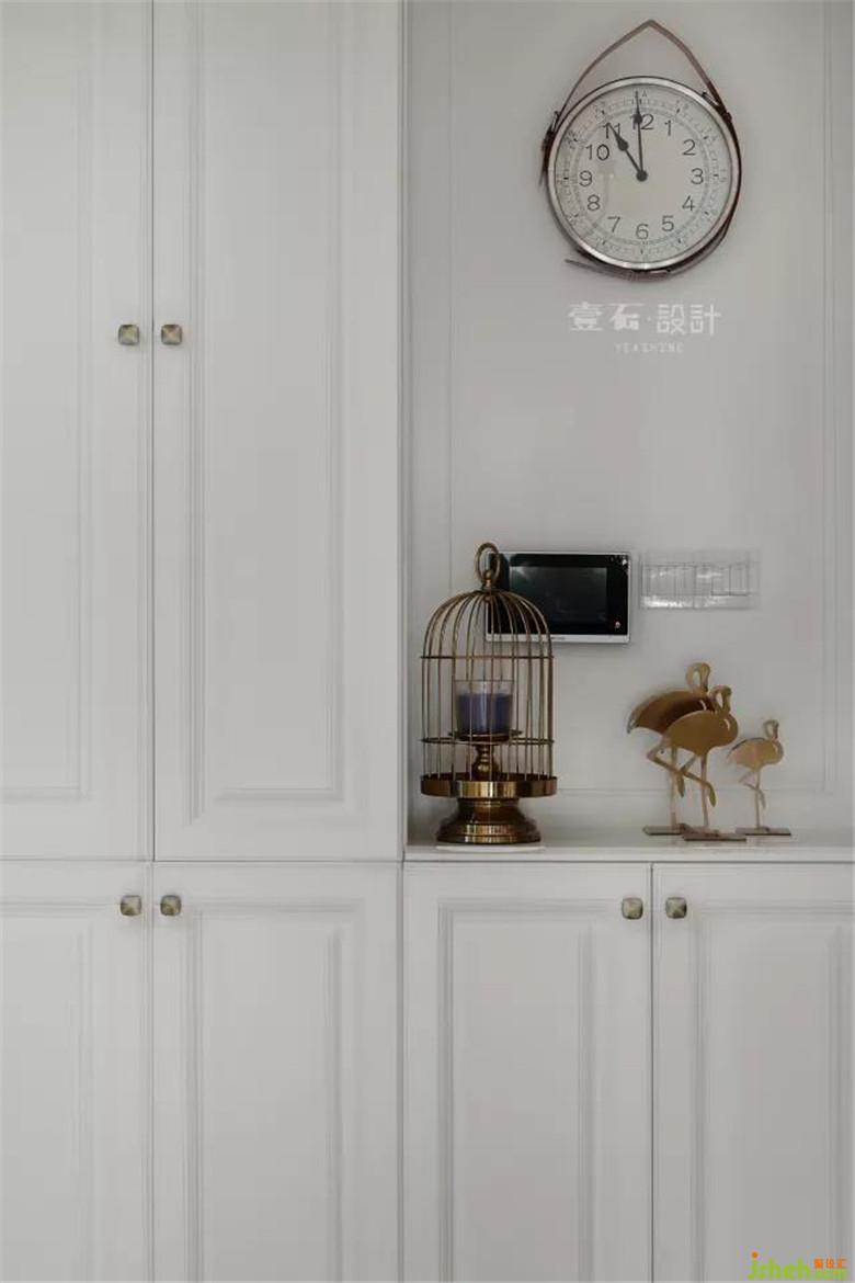 进门装修公司设计了整排收纳鞋柜,亮点依然是软饰。