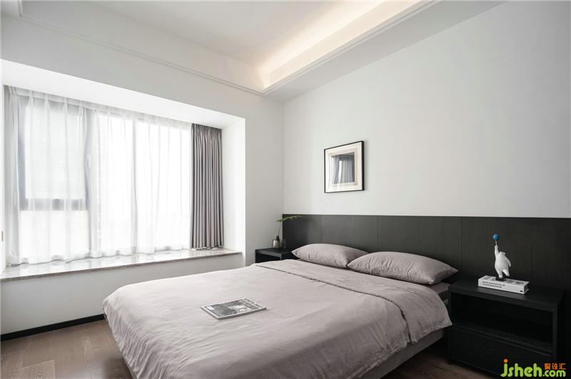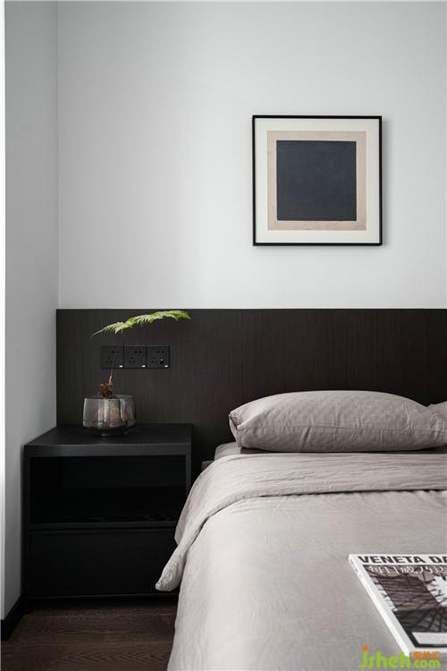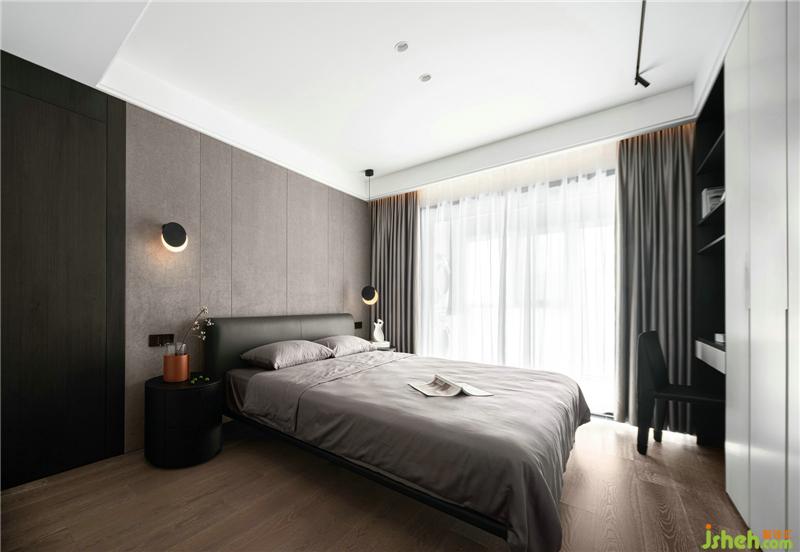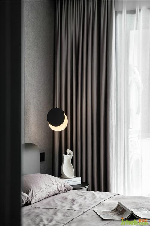 主卧带主卫,考虑实用性及隐秘性,但又追求整体美,设计上用隐形门手法,让视觉上连贯整体,又保留了功能性。装修设计