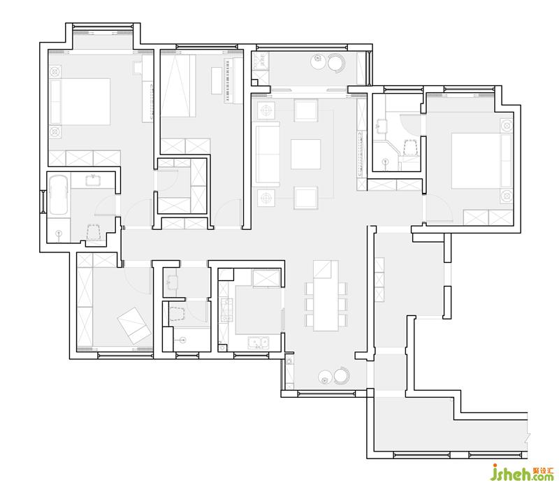 本案为精装修改造,原装修在风格上,色彩上比较形式化,老套,不能满足业主的审美和生活追求。