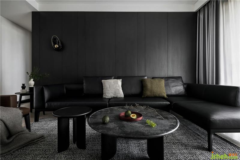 利用深色木饰面,大的色面的手法,让空间更为整体.装修设计