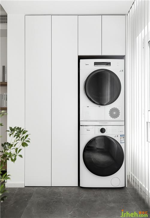 阳台收纳柜和洗烘机的结合。