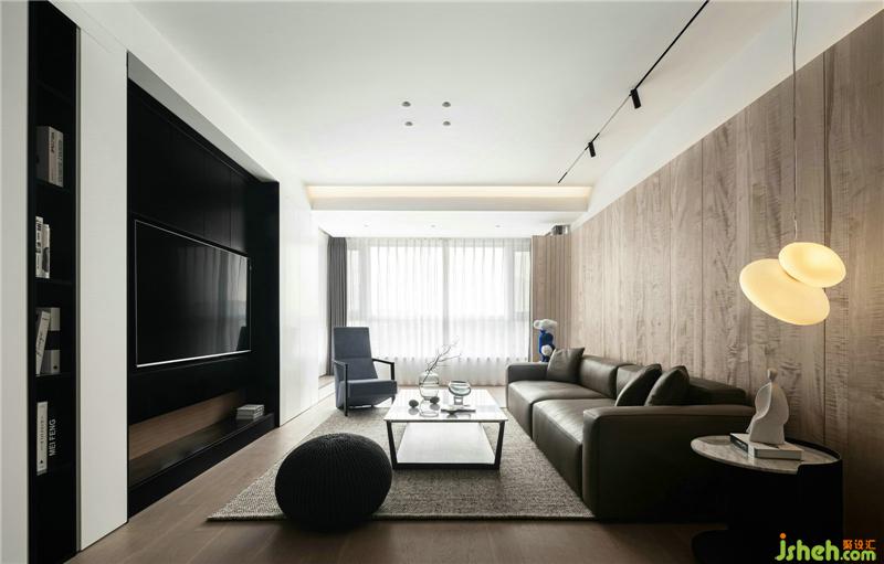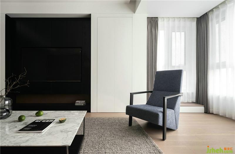 成熟的装修设计就是能把握大局,又注重细节。沙发背景意在营造背有靠山环绕;电视墙位置巧用收纳柜,隐形门和电视内嵌拉平整个墙面在一条线上,空间大气而兼顾细节的实用体验。
