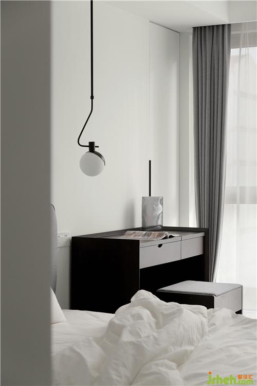 主卧阳台,纳入室内。化妆台、休憩椅,不免让人联想到的画面:女主对镜贴花黄,男主凝视两相望的场景呀。