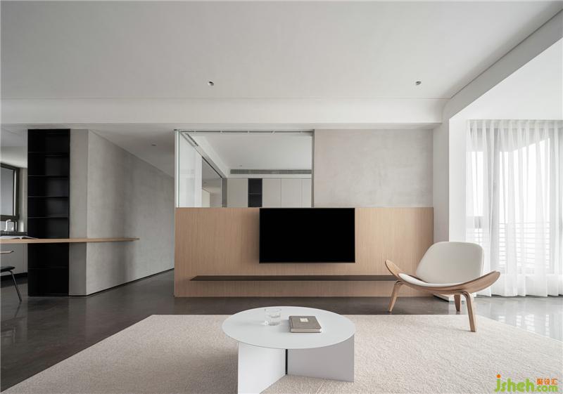 在整体色彩上应用了石材的黑、顶部的白、微水泥的灰为基调,再通过木色做为媒介使整体色调情绪安静下来,让空间与屋主产生感性的而又放松的氛围。