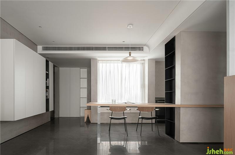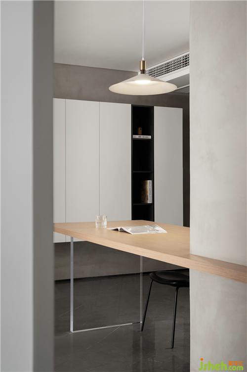 引入建筑设计手法,将餐桌与墙体穿插组合,极简美观南京装修设计。