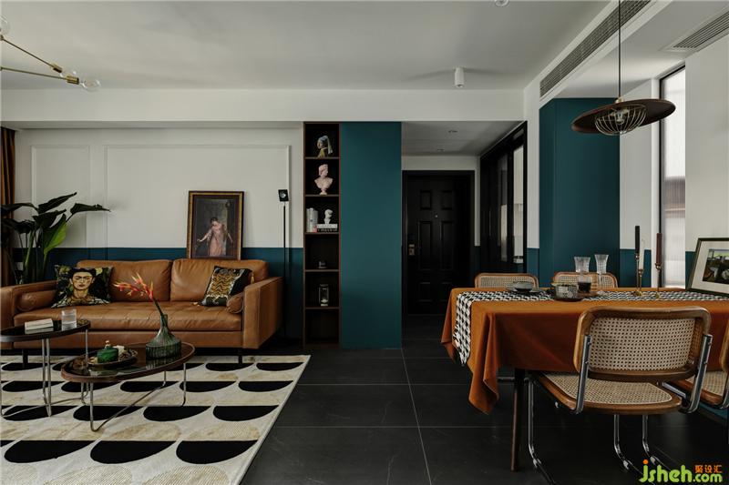 The living room is full of retro flavor, which can make people relax in an instant. The wall is made of peacock blue and color matching wall. The use of gypsum lines not only enriches the wall level, but also presents retro elements.