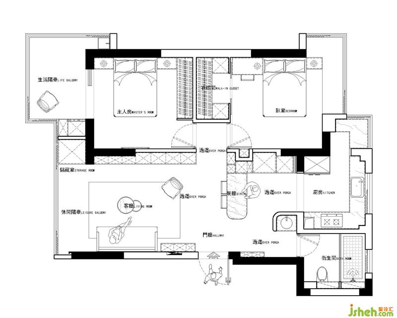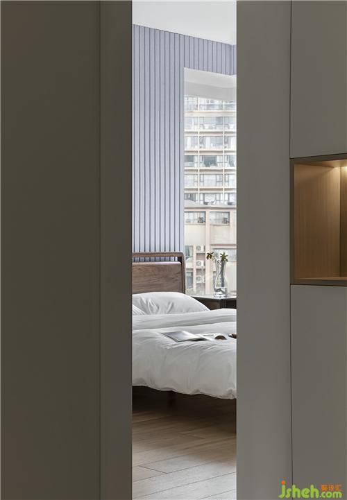 想要一个衣帽间。采用金属置物架的方式 ,可自由调节衣物规划区, 配合吊轨移门的形式,打造一个精致的步入式衣帽间。