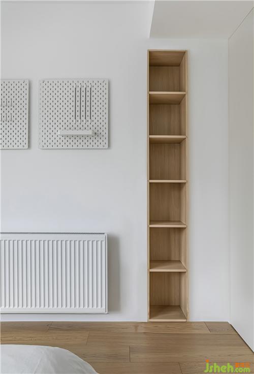 小朋友的卧室,留有一角嵌入柜放置想要展示的物件,南京装修设计还有一个洞洞板留着给孩子发挥。