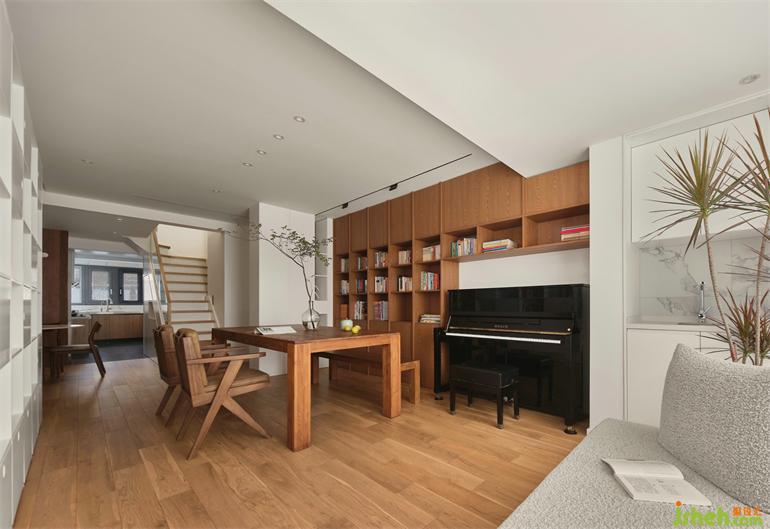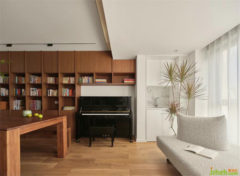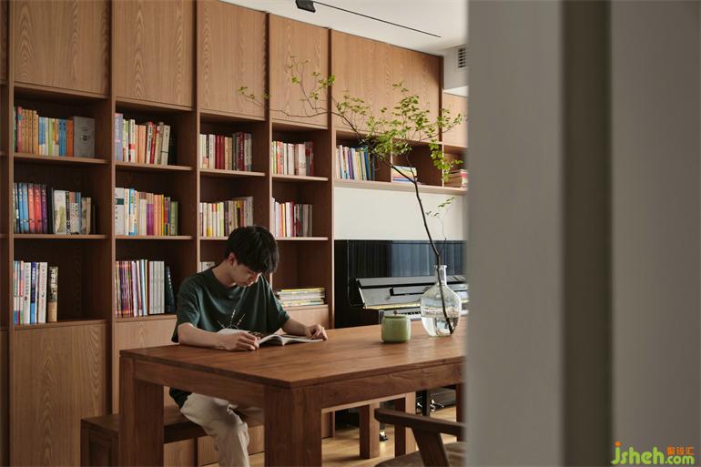 业主家有2个孩子,注重家庭氛围的营造,复式装修设计把客厅设计成了家庭图书馆,绿植,书香就是对孩子心灵的最好滋养。