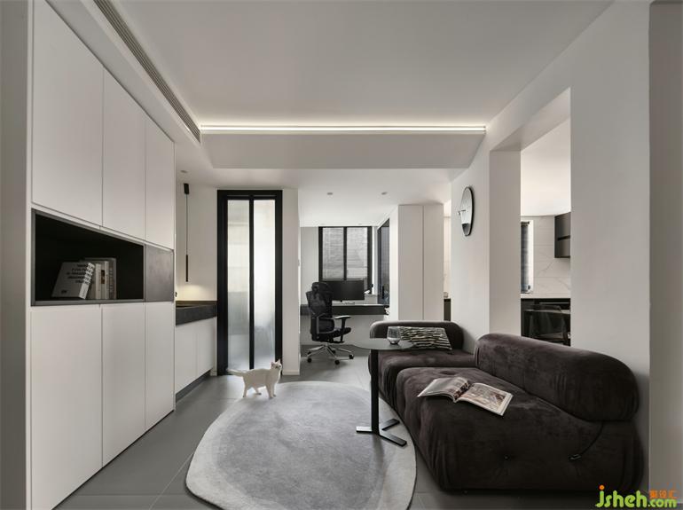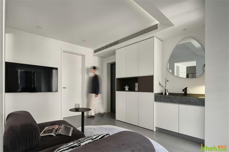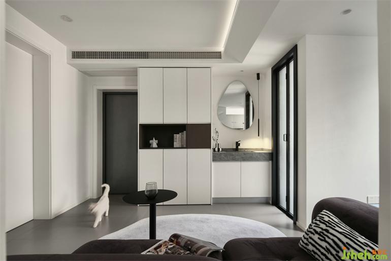 顶天立体的鞋柜,隐于室,也讲究其功能,装修设计增加隐蔽收纳,眼见皆为净。