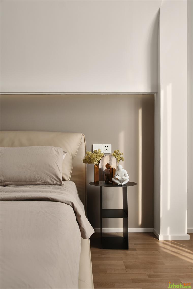 床头藏有暗灯,晚上可以只打开氛围灯,空间装修设计氛围感会很舒适,入了卧室,静下来,暗下来更有利于睡眠。