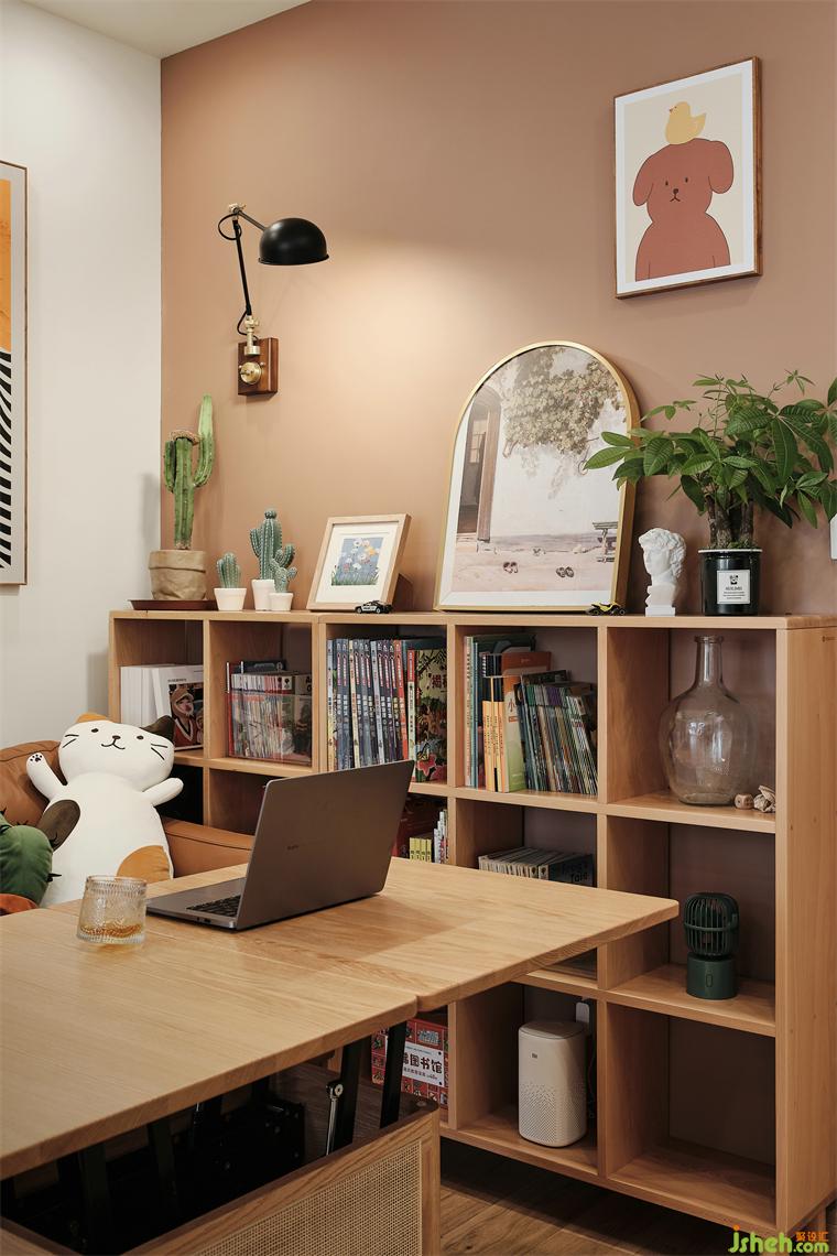把喜欢的小物都带回家,靠墙摆放了一组可自由组合落地架,装修公司可存书,也可摆放绿植鲜花和装饰画。