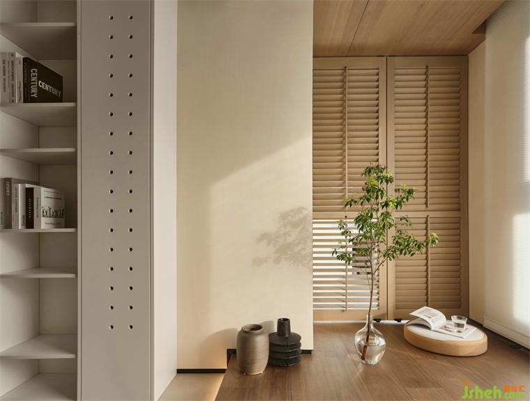 阳台被分成了2部分,一部分做晾晒区,一部分做地台,一扇门的屏隔,装修公司犹如现实和梦想,美观和实用我们都想兼顾到。