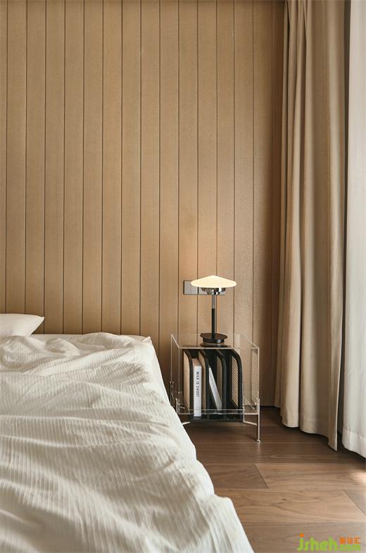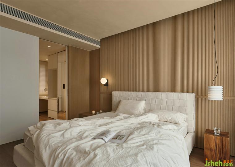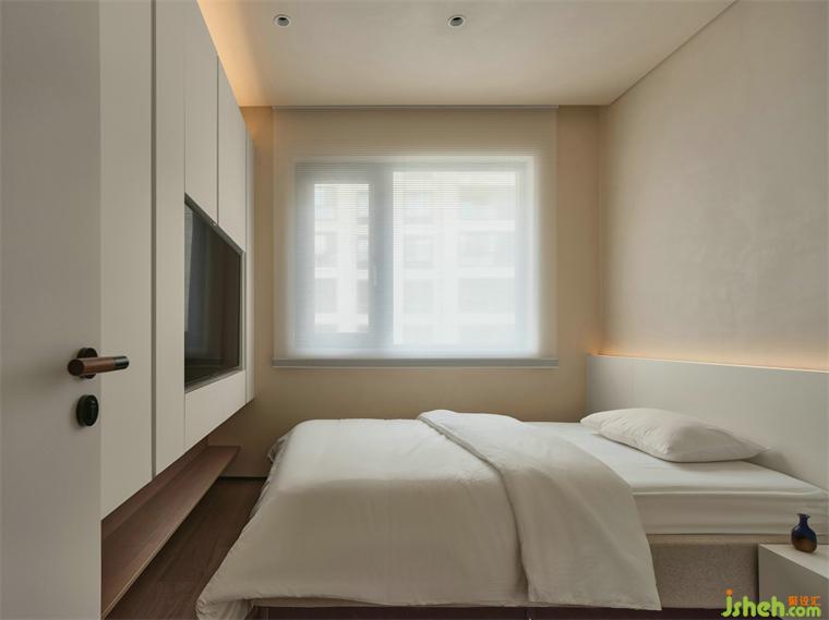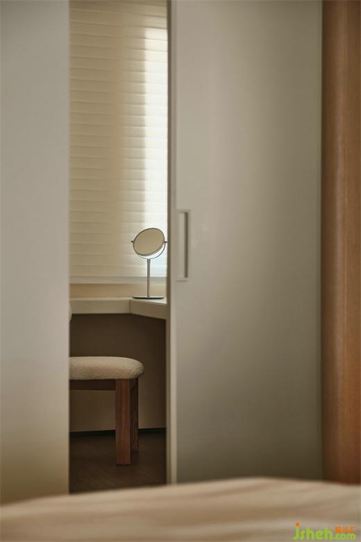 主卧原卫生间改为衣帽间,书桌台,部分柜门做成了镜子,设计实现了更理想的生活状态。