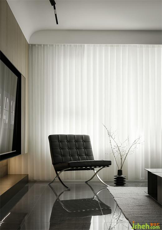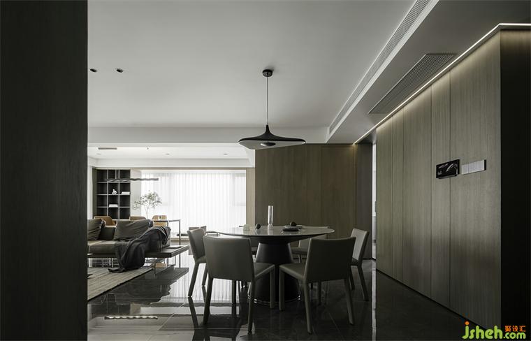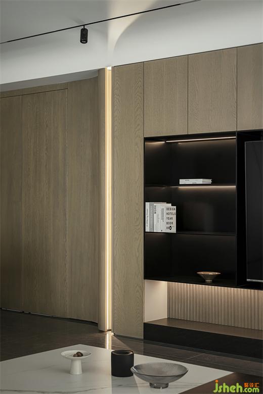 隐形双开门自动关闭为“整”的状态,南京大平层装修设计门的把手在里面,外面只需要推开即可,视觉观和实用性完美结合。